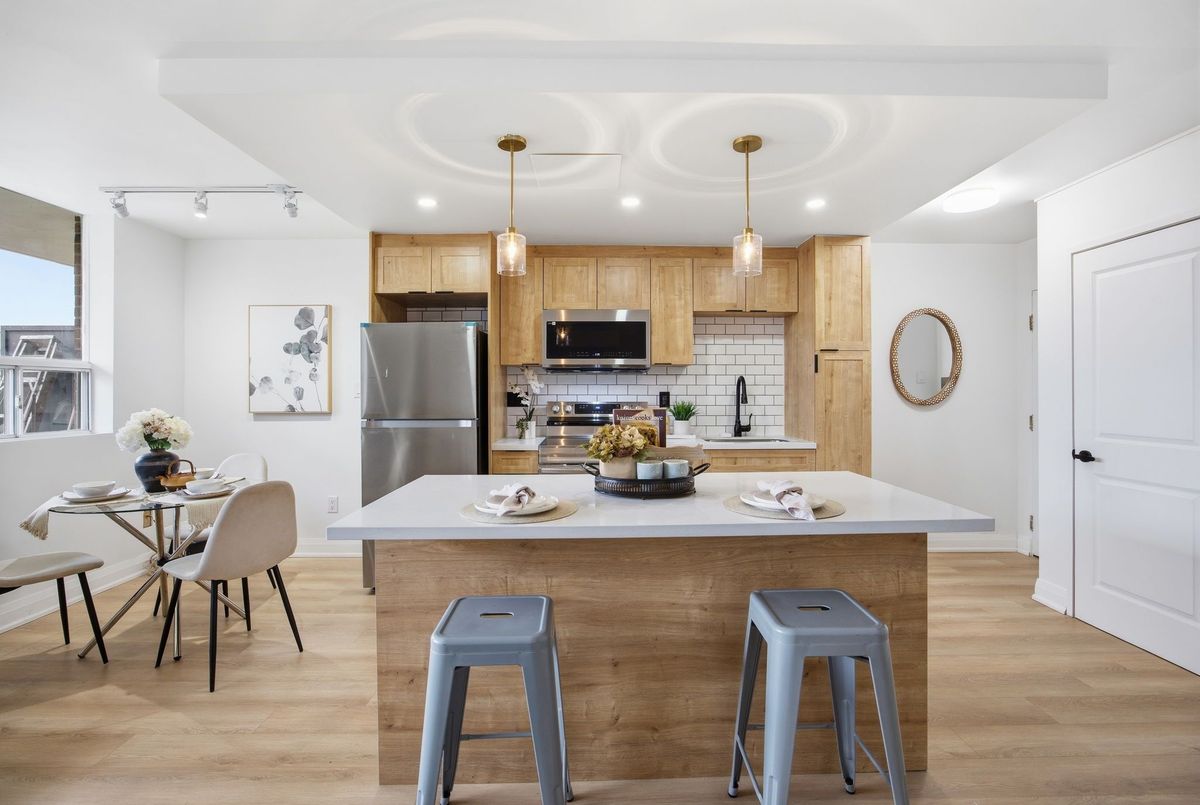 This beautifully updated 2-bedroom, 1-bathroom condo offers a perfect blend of comfort, style, and convenience. Recently renovated, the open concept unit features modern upgrades throughout, making it truly move-in ready. The spacious layout is enhanced by new laminate flooring that adds a sleek and contemporary touch. A refreshed kitchen showcases quality finishes and durable ceramic flooring, a large centre island, ideal for everyday living and entertaining. Freshly painted walls create a bright and welcoming atmosphere that feels warm and inviting. Both bedrooms are generously sized, providing comfortable spaces for rest or work-from-home setups. The functional layout maximizes space, making it ideal for small families, couples, or first-time buyers. Located in a highly sought-after area, this condo is just minutes from Highway 401 for easy commuting. Residents will enjoy close proximity to shopping at Kennedy Commons and access to a wide range of amenities. Nearby institutions include the University of Toronto Scarborough, Centennial College, and the Toronto Pan Am Sports Centre. Public transit, including TTC and GO stations, is only a short drive away for added convenience.This is an excellent opportunity to own a stylish, affordable home in a prime location that offers both comfort and connectivity.